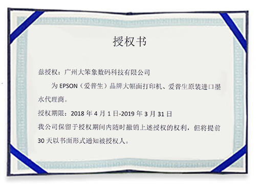 愛(ài)普生代理商證書(shū)