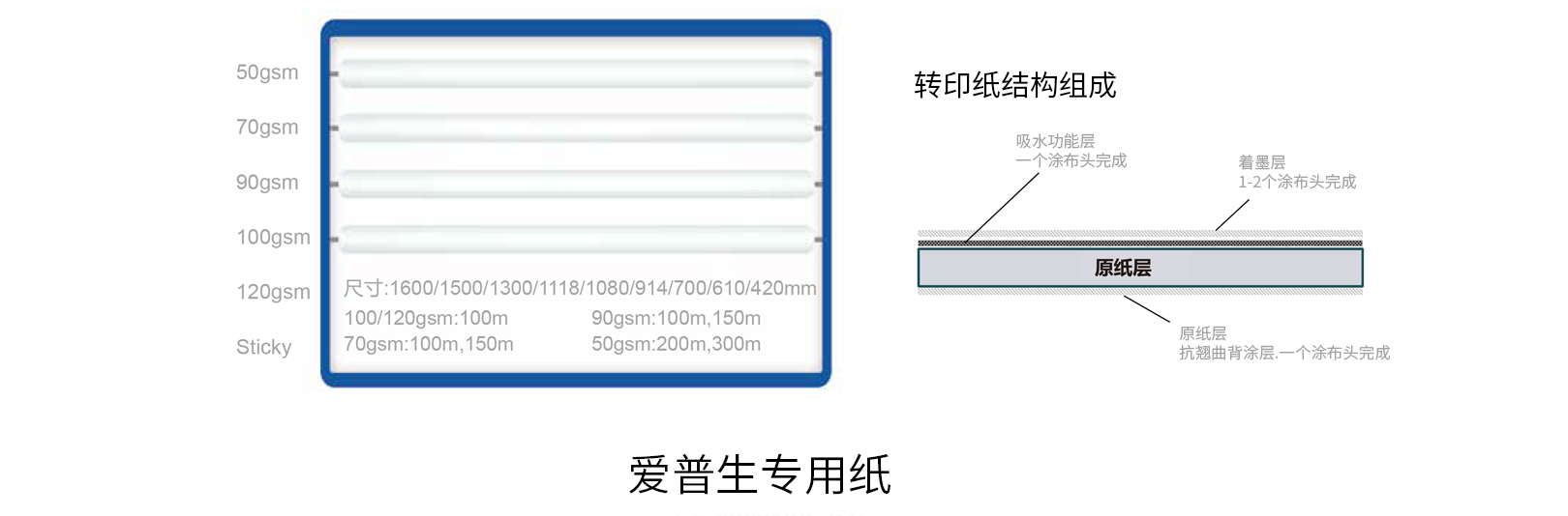 尺寸:1600/1500/1400/1300/1118/1080/914/800/700/610/420/210mmx100m